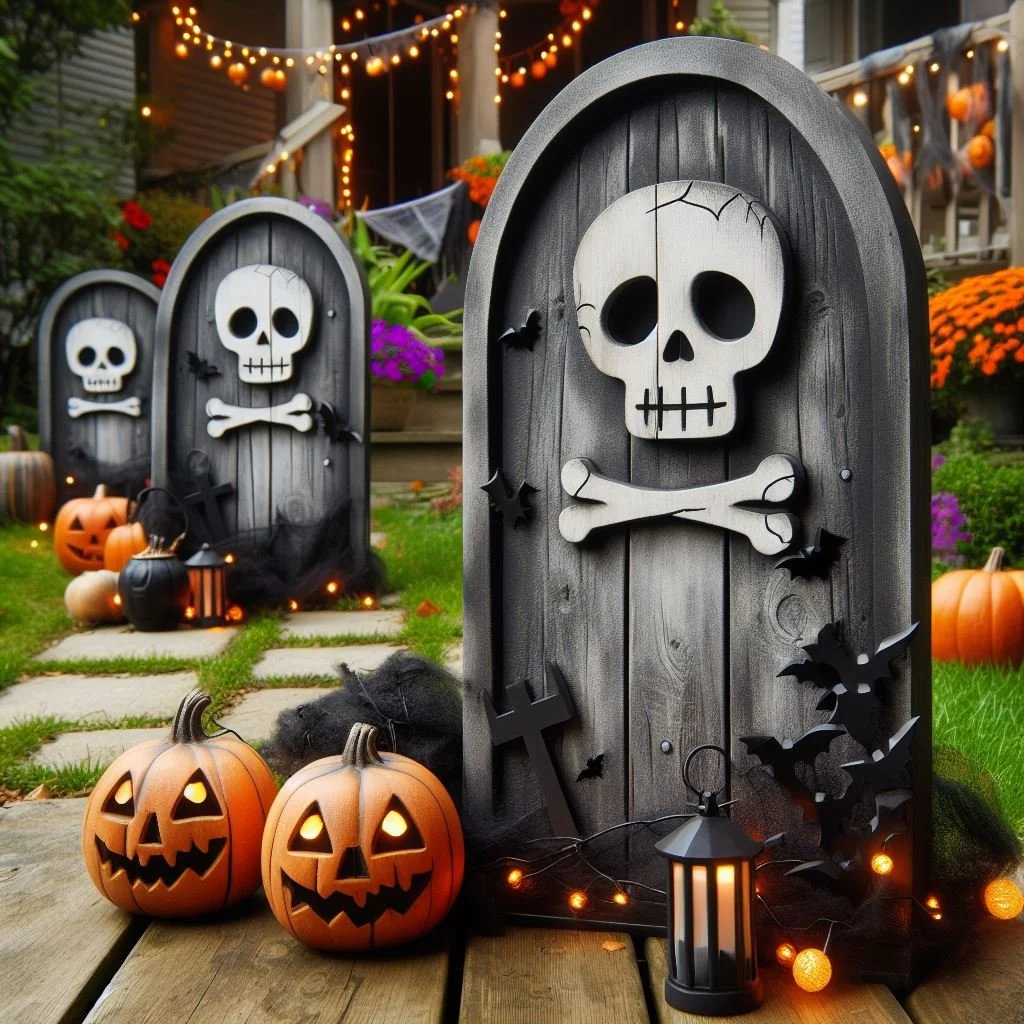 Craft realistic-looking tombstones for your yard using foam board or plywood. Begin by cutting out tombstone shapes from the chosen material and painting them grey to achieve a weathered stone appearance. Next, get creative with creepy epitaphs using paint or permanent markers to add an eerie touch. Consider phrases like "RIP," "Here lies," or humorous spooky puns. Once decorated, strategically place the tombstones throughout your garden to create a chilling mini graveyard. You can enhance the ambiance by adding faux cobwebs, eerie lighting, and other Halloween decorations to complete the haunted scene. This DIY project is sure to give trick-or-treaters a delightful fright as they pass by your spooky display.
