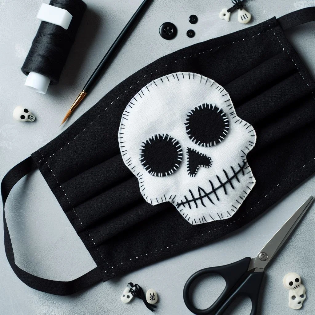 Create detailed skull face masks using papier-mâché and paint. Begin by shaping the papier-mâché to conform to the contours of your face, ensuring a comfortable and secure fit. Once dry, paint the masks white, adding intricate black details to evoke the eerie aesthetic of a skull. Attach elastic straps to the masks for easy wearability, allowing them to comfortably stay in place during festivities. These meticulously crafted masks serve as an elegant and spine-chilling addition to any Halloween costume, offering a sophisticated twist on the classic skull motif. Whether worn as part of a Dia de los Muertos ensemble or as a standalone accessory, these masks are sure to turn heads and inspire admiration for their artistry and craftsmanship.