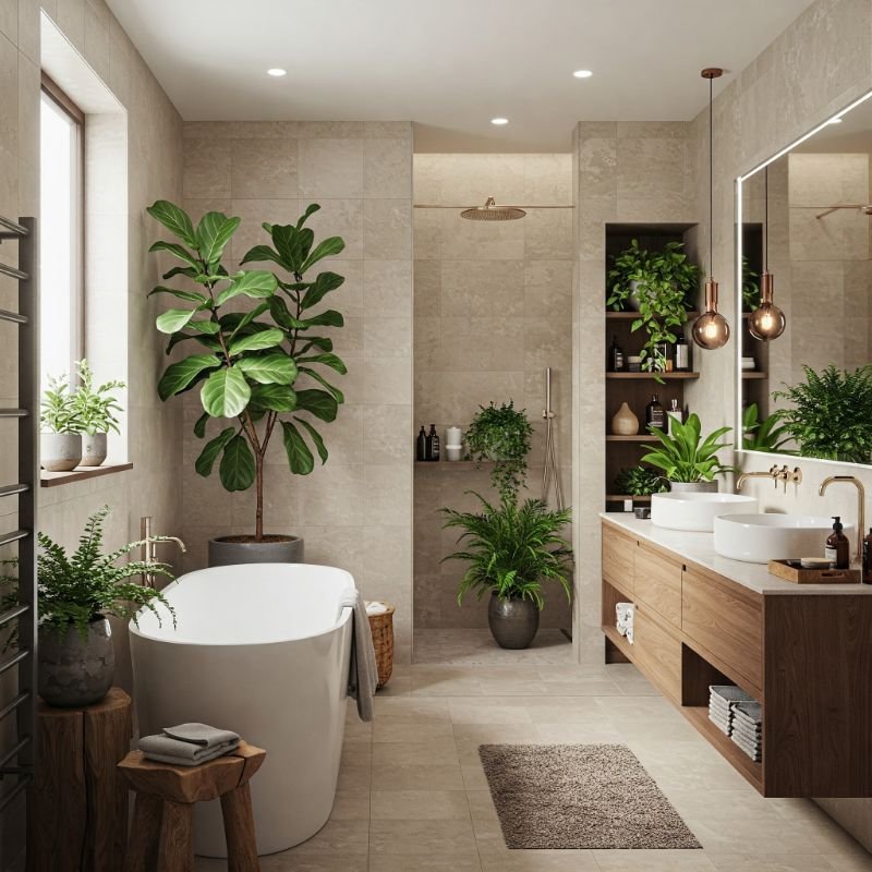 Plants infuse bathrooms with spa-like tranquility while purifying humid air—all for the price of a potted friend. Low-maintenance options like snake plants, pothos, or aloe thrive in bathroom environments and cost between $10-$30 each. These green additions function like living sculptures, adding organic shapes and movement to spaces often dominated by hard surfaces and right angles. Place them on windowsills, vanities, or hanging planters to introduce vertical interest without permanent commitment. The psychological effect is remarkable—studies show plants reduce stress and improve mood, making your morning routine more pleasant. Like bringing a piece of a luxury resort into your daily life, bathroom greenery delivers high-end ambiance for pocket-change investment.
