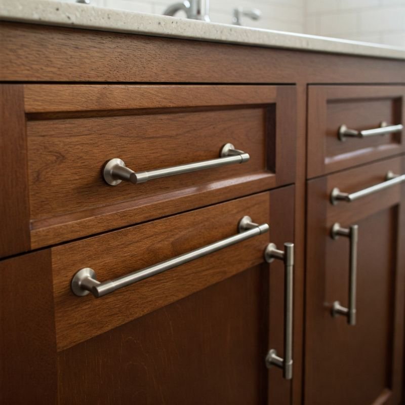 Cabinet hardware functions as your bathroom's accessories—small details with outsized visual impact. For $2-$5 per handle or knob, you'll completely refresh cabinetry without the expense of replacement or refinishing. This subtle update works like changing buttons on a jacket—the structure remains the same while the character transforms completely. Modern matte black creates contemporary edge, brushed gold adds warmth and luxury, while ceramic knobs might introduce pattern or color. When selecting new hardware, bring an existing piece to ensure proper sizing—the screw positioning must match unless you're willing to fill and redrill holes. For maximum impact, coordinate your selections with towel bars and faucets, creating a cohesive language that suggests intentional design rather than piecemeal updates.