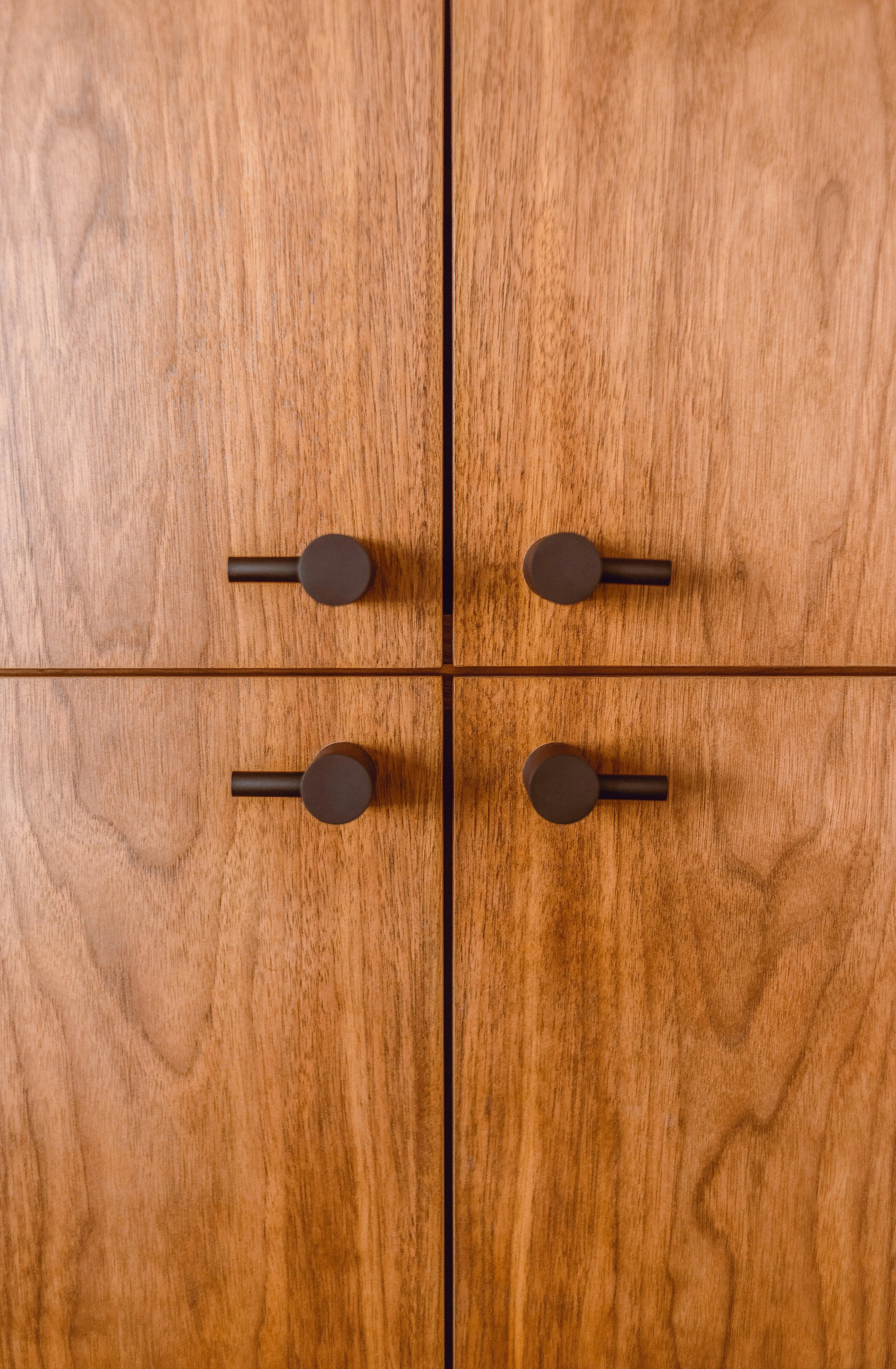 Measure and mark where the knobs or pulls will go. Use a drill to create pilot holes, then attach the hardware.