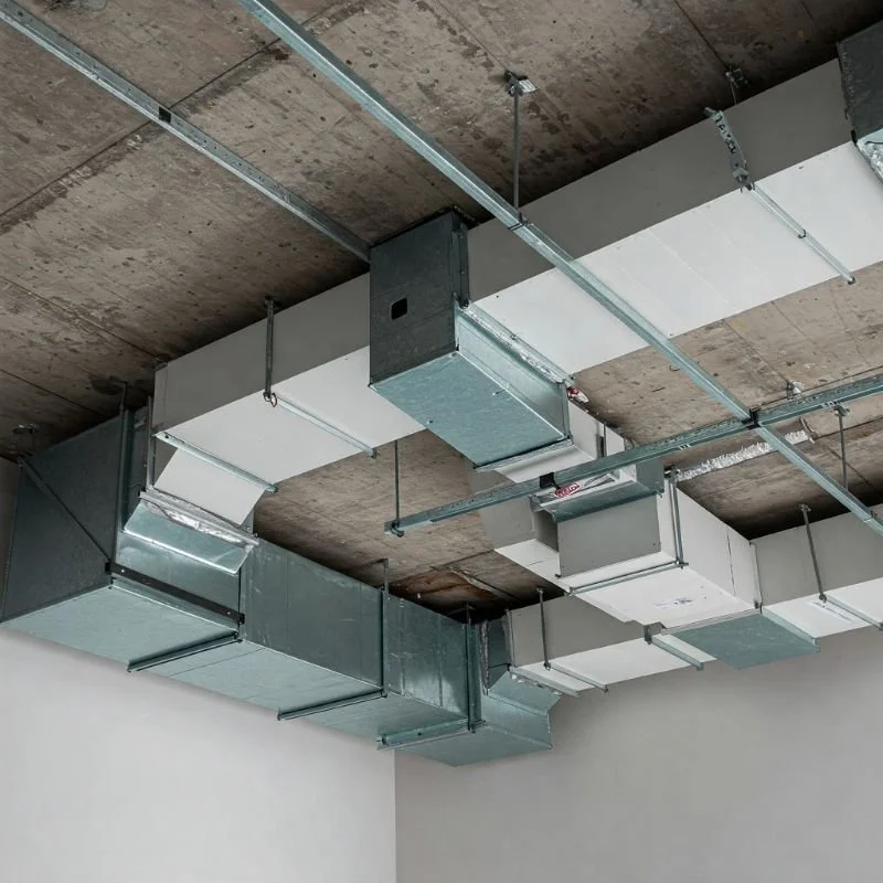 Fiberglass Duct Board: Rigid fiberglass panels formed into rectangular ducts. They provide built-in insulation and sound dampening but aren't as durable as metal.
