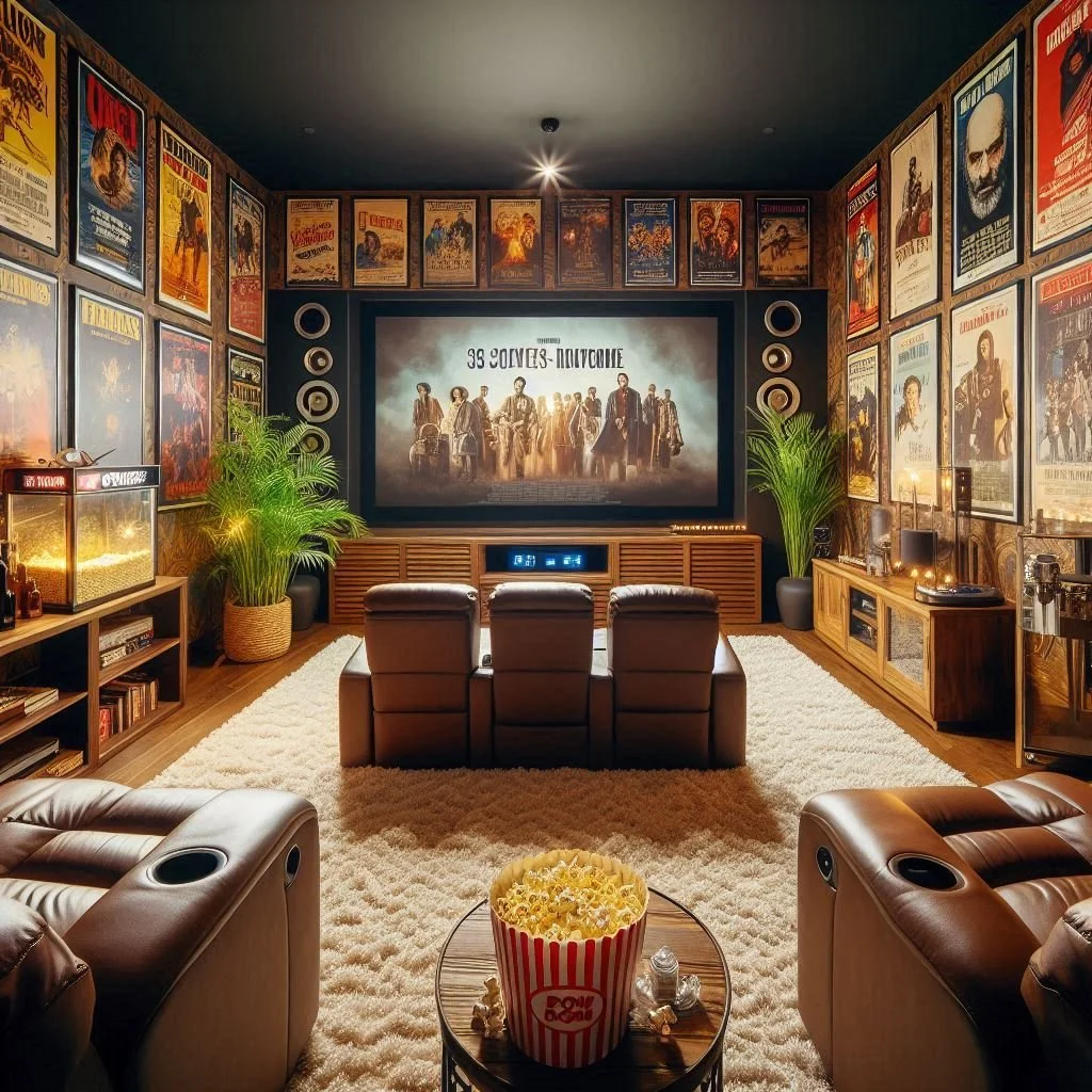 Why go out to the movies when you can enjoy a cinematic experience at home? A dedicated home theater room, complete with plush reclining seats, a state-of-the-art sound system, and a large screen or projector, will elevate your movie nights to the next level. Soundproofing the room ensures you won’t disturb the rest of the house, and blackout curtains or motorized shades create the perfect viewing environment. Add a popcorn machine and a mini fridge for snacks, and you’re all set for a cozy movie marathon. This setup not only provides an immersive viewing experience but also adds a luxurious touch to your home, making every movie night a special occasion.