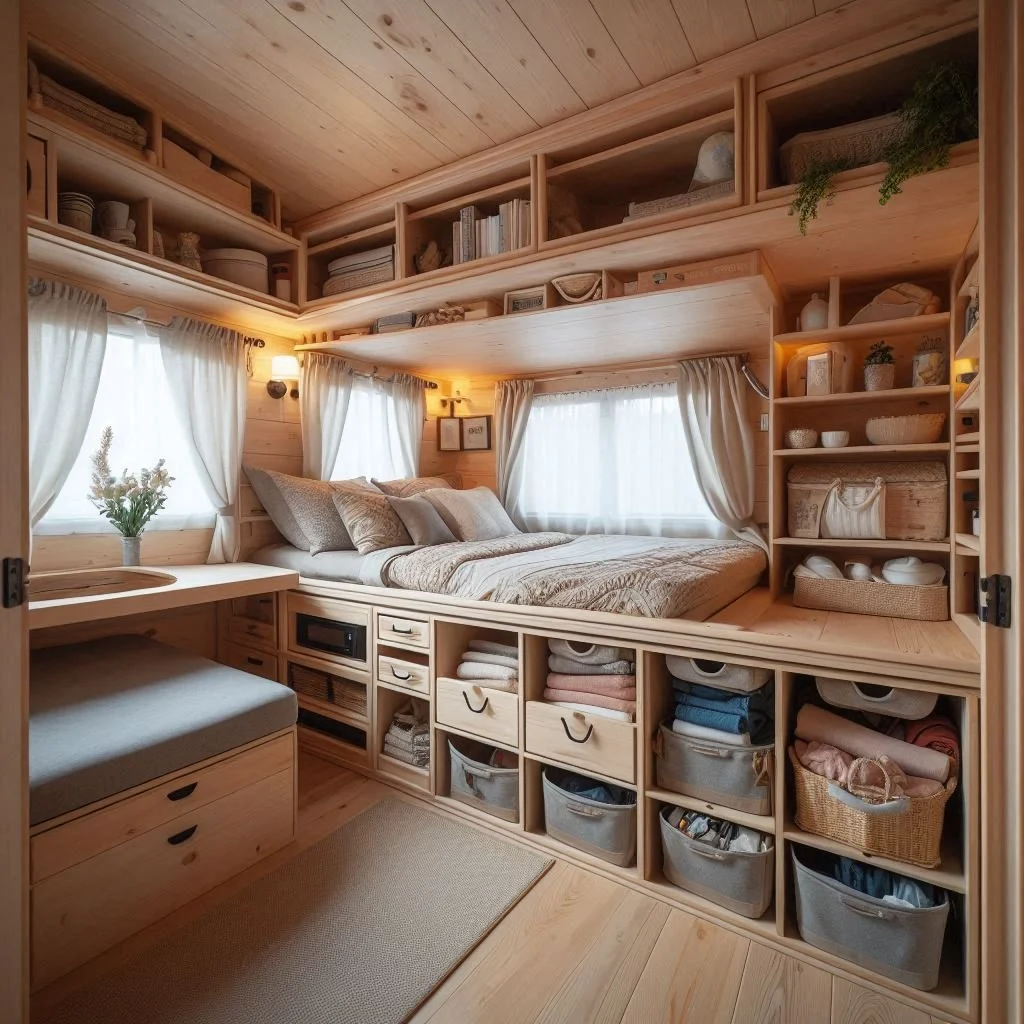 Use built-in storage solutions, multifunctional furniture, and an open floor plan to maximize space. Keep your home organized and clutter-free to make it feel larger.