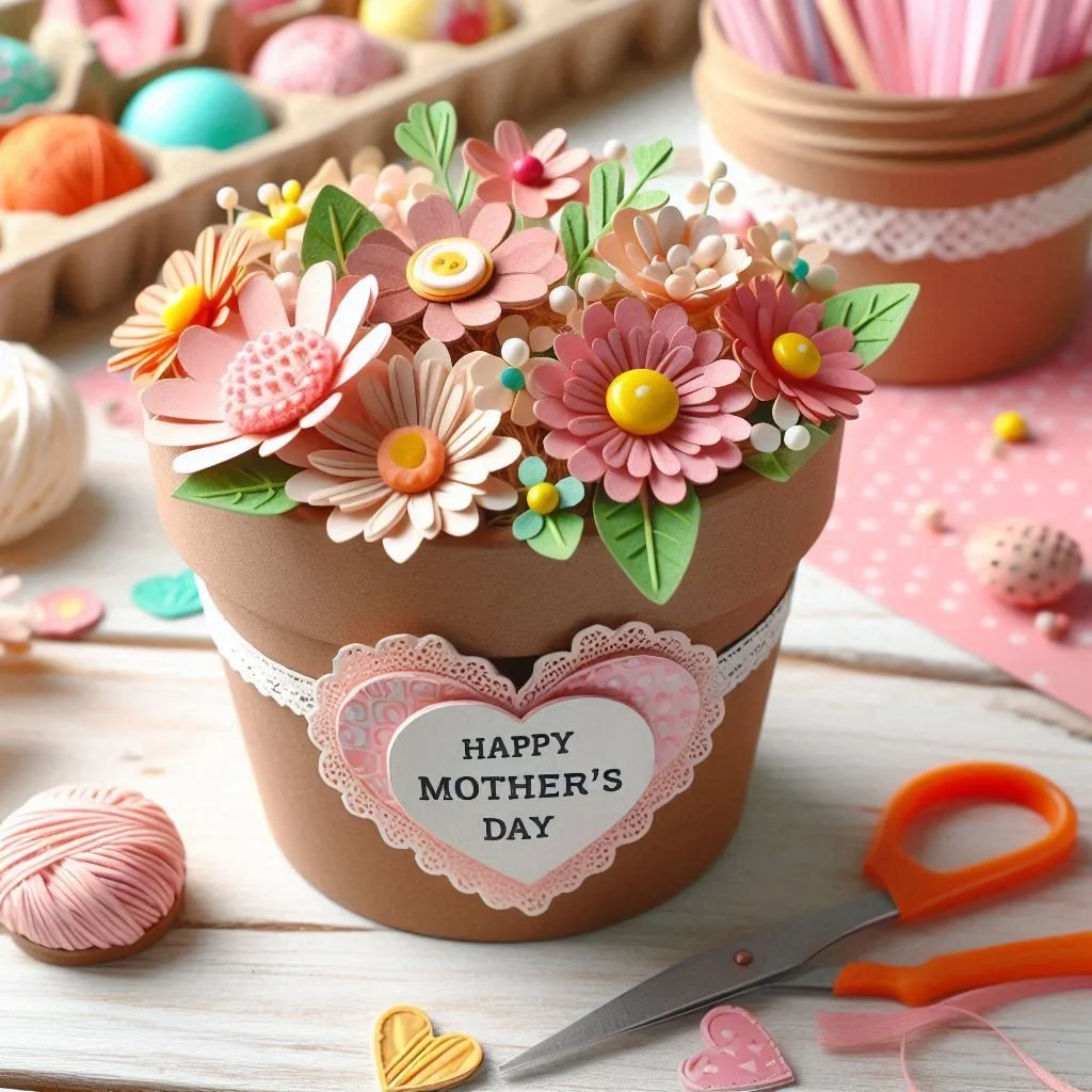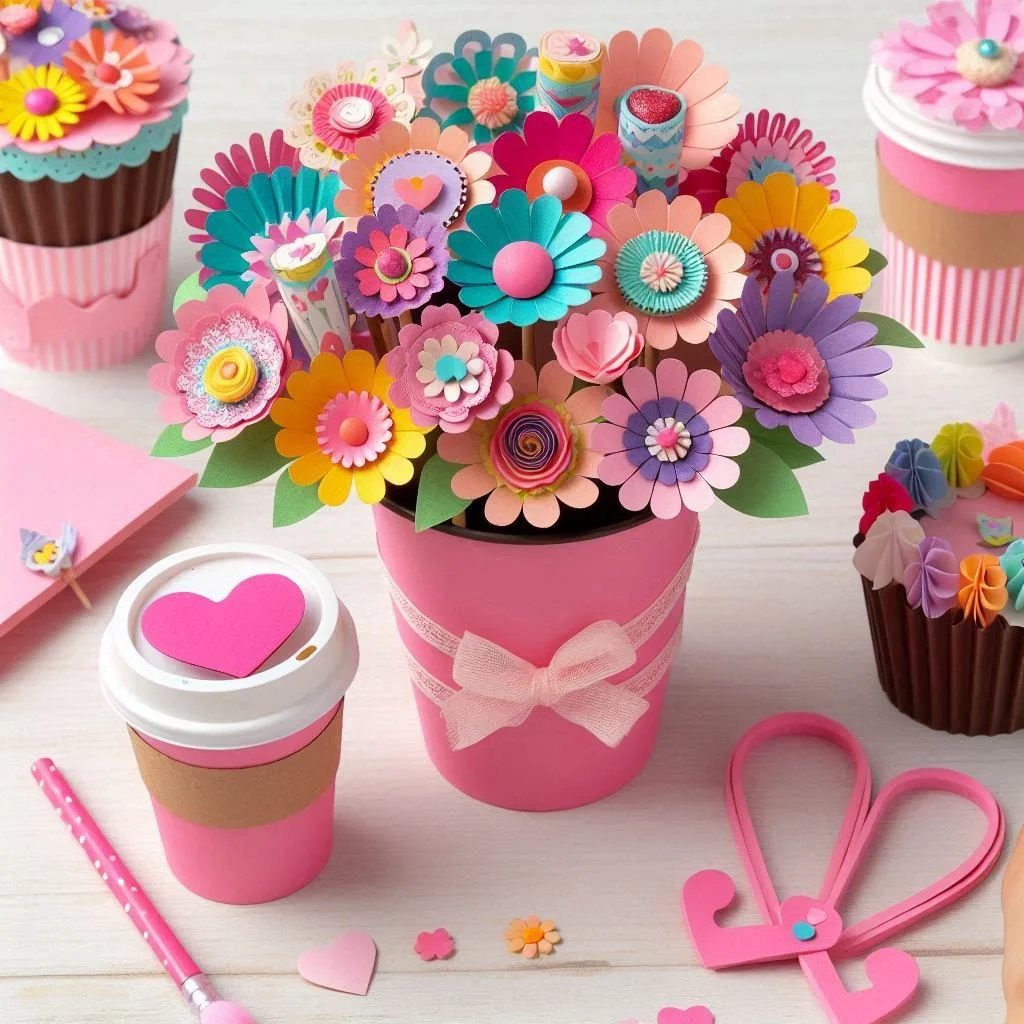 Paper cup bouquets are a delightful way to give mom some "flowers" that will never wilt. Use paper cups as the base for the bouquet, letting your toddler decorate the cups with markers, stickers, and glitter. Next, cut out flower shapes from construction paper and attach them to craft sticks. Place these paper flowers in the decorated cups to complete the bouquet. This charming craft not only provides a fun and creative activity for toddlers but also results in a beautiful, everlasting bouquet that mom will cherish. It's a perfect way to combine art and love, creating a meaningful and decorative gift that brightens up any room.