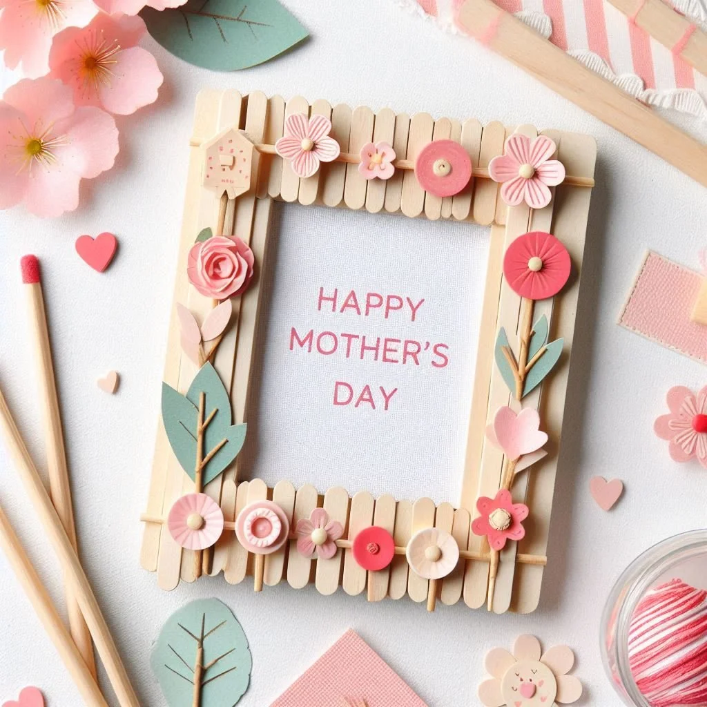 Popsicle stick photo frames are an easy and fun craft for toddlers, perfect for creating cherished keepsakes. Begin by gluing popsicle sticks together to form a square or rectangle frame. Let your toddler decorate the frame with paint, stickers, and other embellishments, allowing their creativity to shine. Once the frame is dry, add a photo of the toddler and their mom to complete the project. This handmade frame not only serves as a beautiful display but also holds sentimental value, capturing a special moment. It's a delightful and personal gift that celebrates the bond between mother and child, making it a treasured keepsake for years to come.