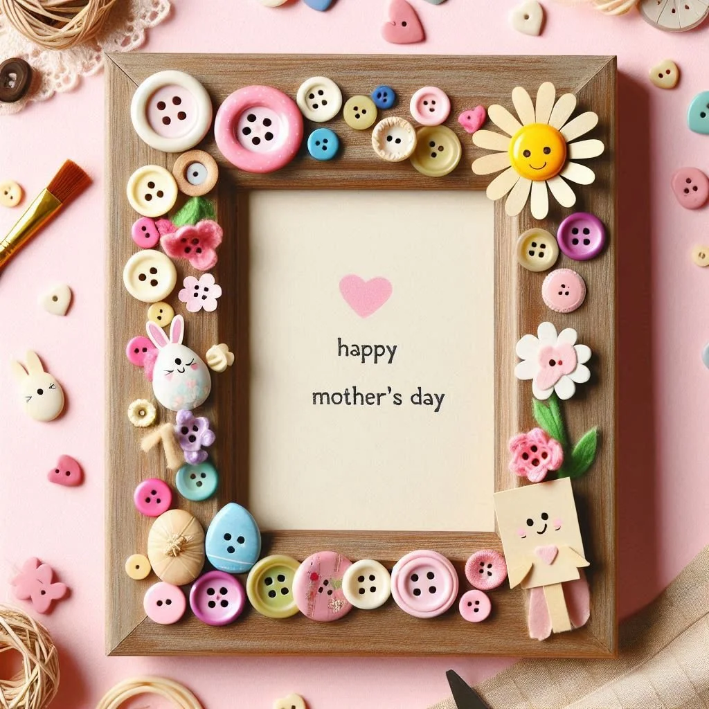 Button picture frames are a cute and easy craft that toddlers can make. Begin with a plain wooden or cardboard picture frame, and let your toddler glue colorful buttons around the edges. Once the glue is dry, insert a favorite photo of the toddler and their mom. This simple yet charming frame becomes a lovely gift that mom can display proudly. The activity not only provides a fun, creative outlet for young children but also results in a meaningful keepsake that captures special memories and showcases the child's handiwork, making it a treasured addition to any home decor.