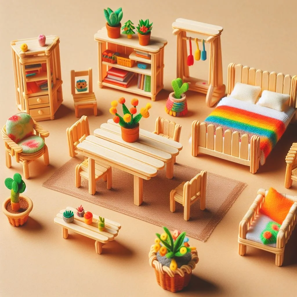 Transform dollhouses and dioramas into cozy retreats with delightful popsicle stick miniature furniture. Crafting these tiny treasures is a delightful and creative endeavor that adds whimsy and charm to small-scale spaces. From dainty chairs and tables to adorable beds and bookshelves, popsicle stick miniature furniture brings personality and character to miniature worlds. These handmade pieces are not only fun to make but also allow for endless customization and creativity. Whether you're furnishing a dollhouse, creating a diorama, or simply indulging in a miniature hobby, popsicle stick furniture adds a touch of nostalgia and creativity to your tiny creations, making them truly special.