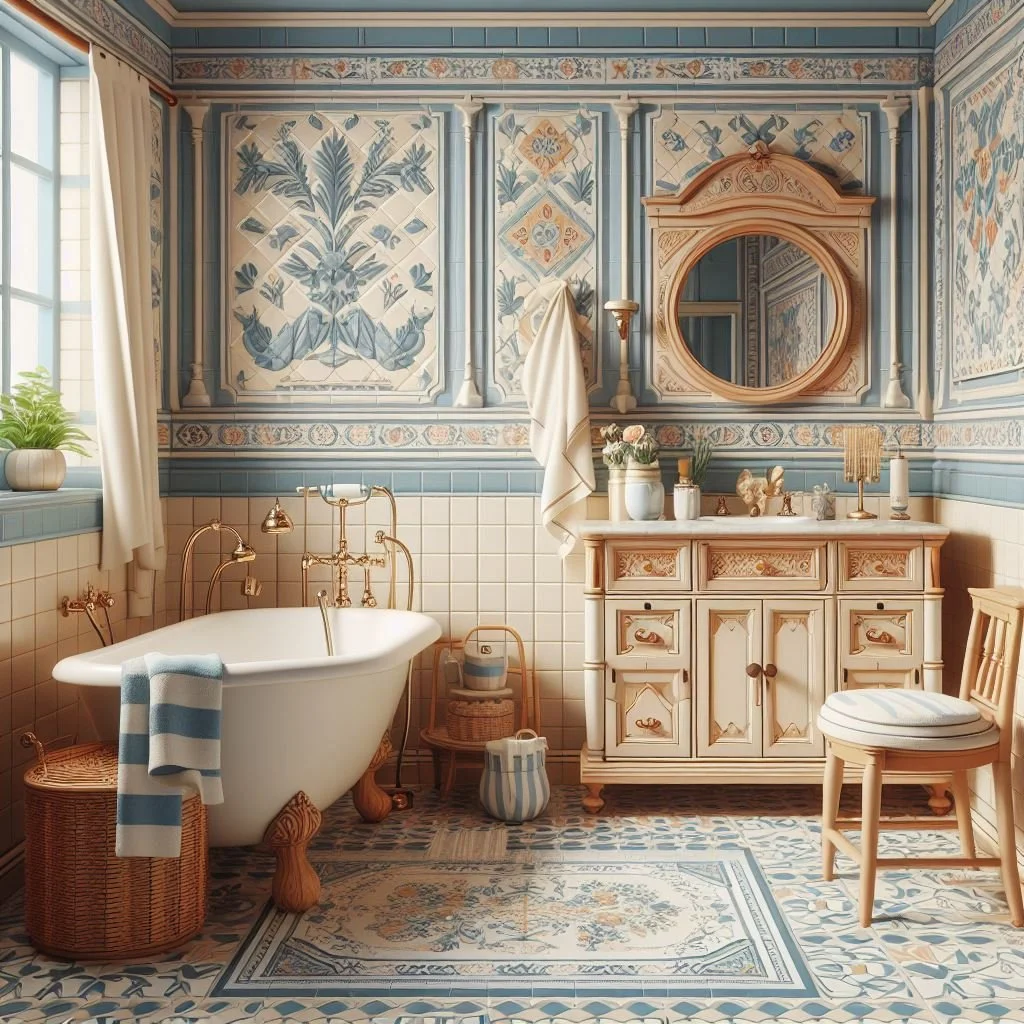Add a touch of vintage charm to your bathroom with antique-inspired decor that adds character and personality to your space. Display ornate mirrors with intricate frames to add depth and visual interest, or use vintage artwork to create a gallery wall that tells a story. Incorporate vintage-inspired accessories like apothecary jars or perfume bottles to add a touch of old-world elegance to your modern bathroom.