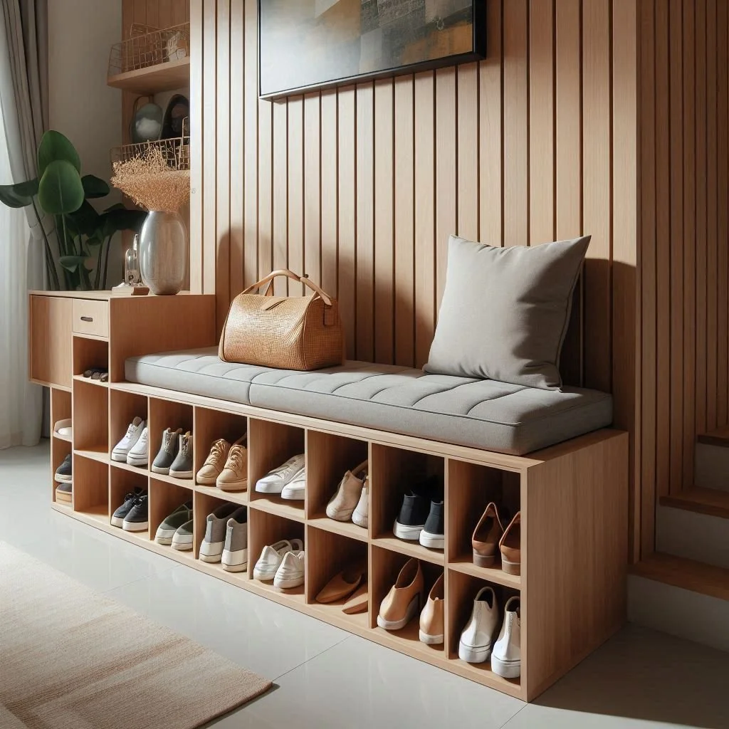 Upgrade your entryway with a bench that doubles as shoe storage. Many benches come equipped with hidden compartments or shelves beneath the seat, providing ample space to neatly store shoes out of sight, preserving the tidiness of your entry space. Beyond its storage capabilities, the bench also offers a convenient spot to sit while you put on or take off your shoes, enhancing both comfort and functionality in your daily routine. Whether you're welcoming guests into your home or simply entering and exiting yourself, this versatile bench becomes a practical and stylish addition to your entryway, seamlessly blending form and function to create a welcoming and organized space.