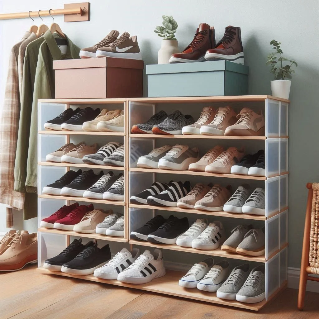 If you're short on closet space, multi-tiered shoe racks are a game-changer. Designed with several shelves or tiers, these racks ingeniously enable vertical stacking of multiple pairs of shoes, effectively optimizing storage capacity while minimizing floor space usage. Each tier provides a dedicated platform for organizing and displaying footwear, allowing you to easily access and select the perfect pair for any occasion. Whether placed inside a closet or against a wall, these racks offer a practical and efficient storage solution that seamlessly integrates into any living space. Embrace the versatility of multi-tiered shoe racks to declutter your closet and streamline your footwear collection, unlocking newfound organization and convenience in your daily routine.