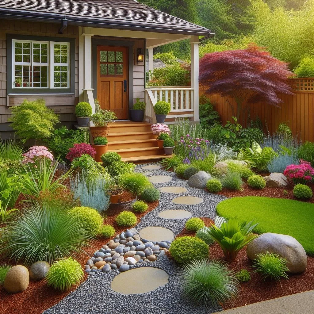 Channel the beauty of Japanese landscaping with a rock garden that incorporates natural elements like rocks, sand, and moss. Inspired by traditional Japanese design principles, these tranquil landscapes are meticulously crafted to evoke a sense of harmony and balance, creating a serene retreat in your front yard. With their minimalist aesthetic and thoughtful composition, Japanese rock gardens offer a captivating focal point that seamlessly blends into any landscape. Furthermore, their low-maintenance nature makes them a practical choice for small front yards, allowing you to enjoy the beauty and tranquility of your outdoor space with minimal upkeep. Embrace the elegance and serenity of Japanese rock gardens as you transform your front yard into a haven of natural beauty and peaceful contemplation.