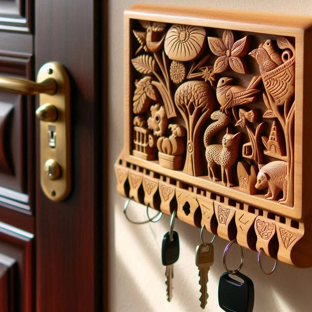 Crafting a wooden key holder offers a practical solution for keeping keys orderly and readily available. This endeavor entails fashioning a compact wooden board outfitted with hooks or slots designated for key storage. Through customization with paint, stain, or embellishments like stencils or carvings, you can infuse the design with personal flair or complement existing decor themes. Whether mounted near entryways or in designated organizational spaces, a handmade wooden key holder not only serves a functional purpose but also adds a touch of craftsmanship and individuality to your home environment. With attention to detail and creativity, this project offers a satisfying blend of utility and artistic expression, ensuring your keys remain both secure and stylishly presented.