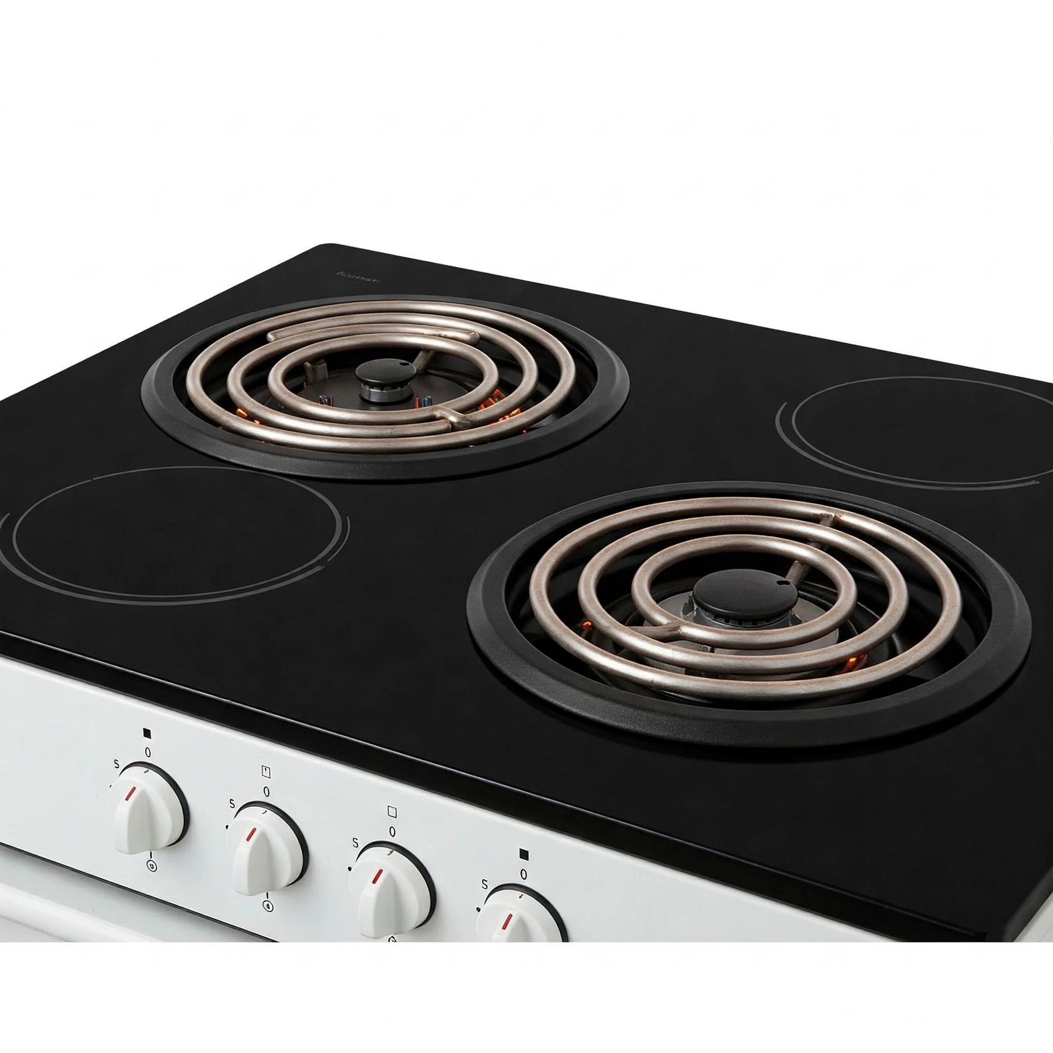 First on our list is the classic coil-style electric stove. You’ve likely seen these in older homes—or in your grandma’s kitchen. They feature electric heating elements shaped like coils that glow red-hot when in use. The coils themselves serve as the cooking surface, and you’ll usually have drip pans below to catch spills.
